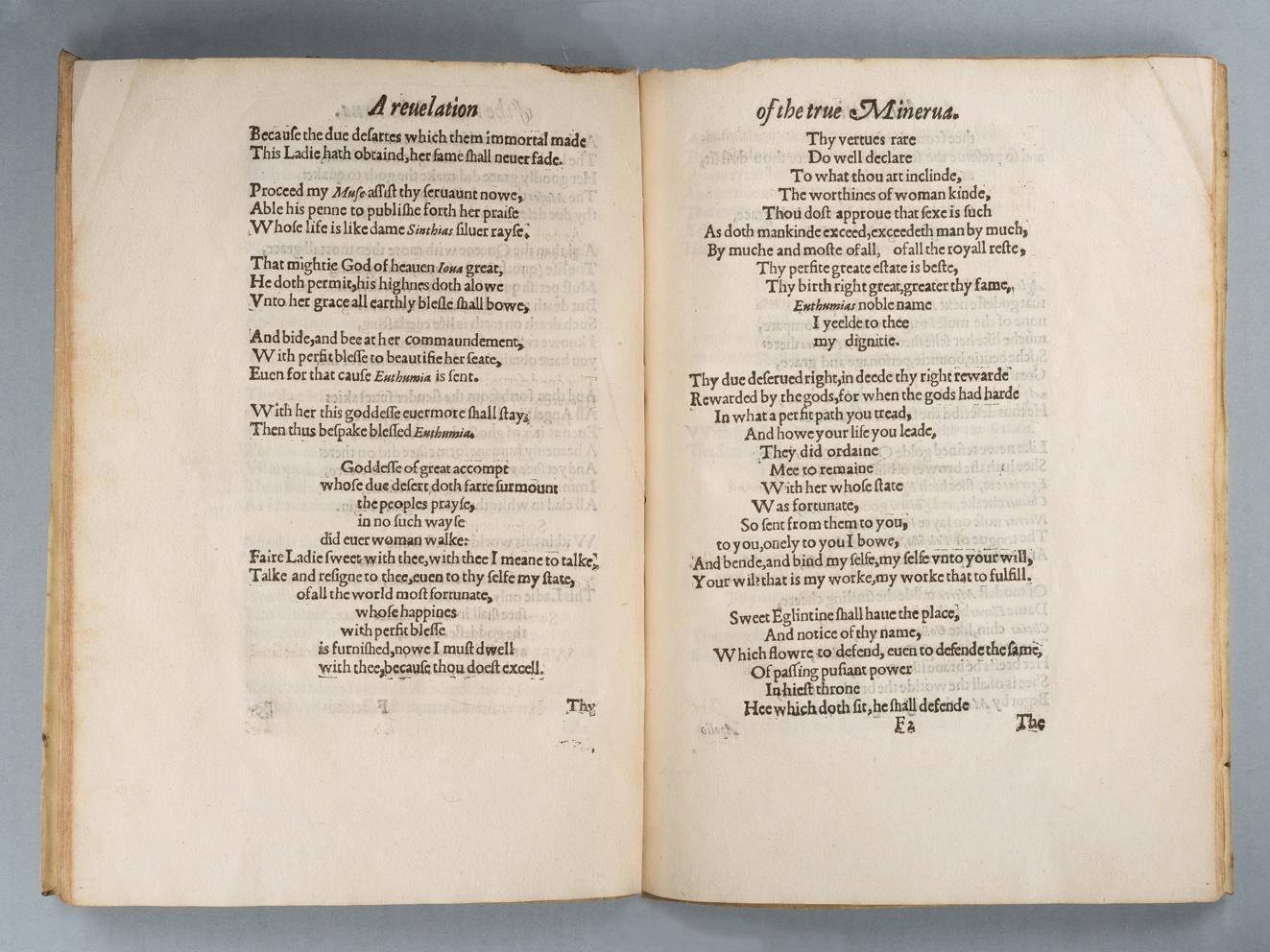 Fig. 1. Thomas Blenerhasset, A Revelation of the True Minerva (1582), F1v-F2r. RB 31244, The Huntington Library, San Marino, California.