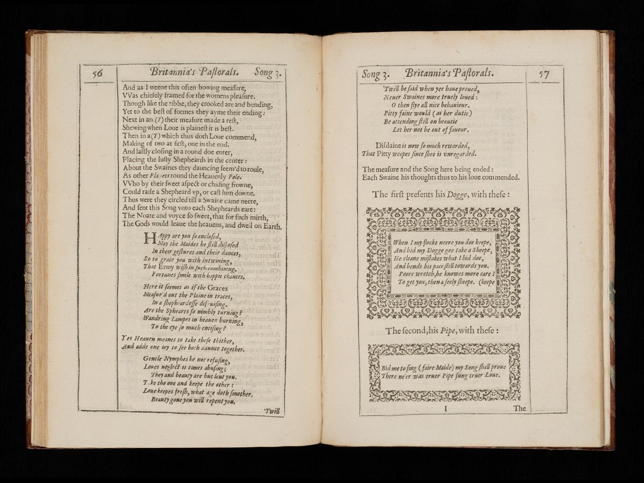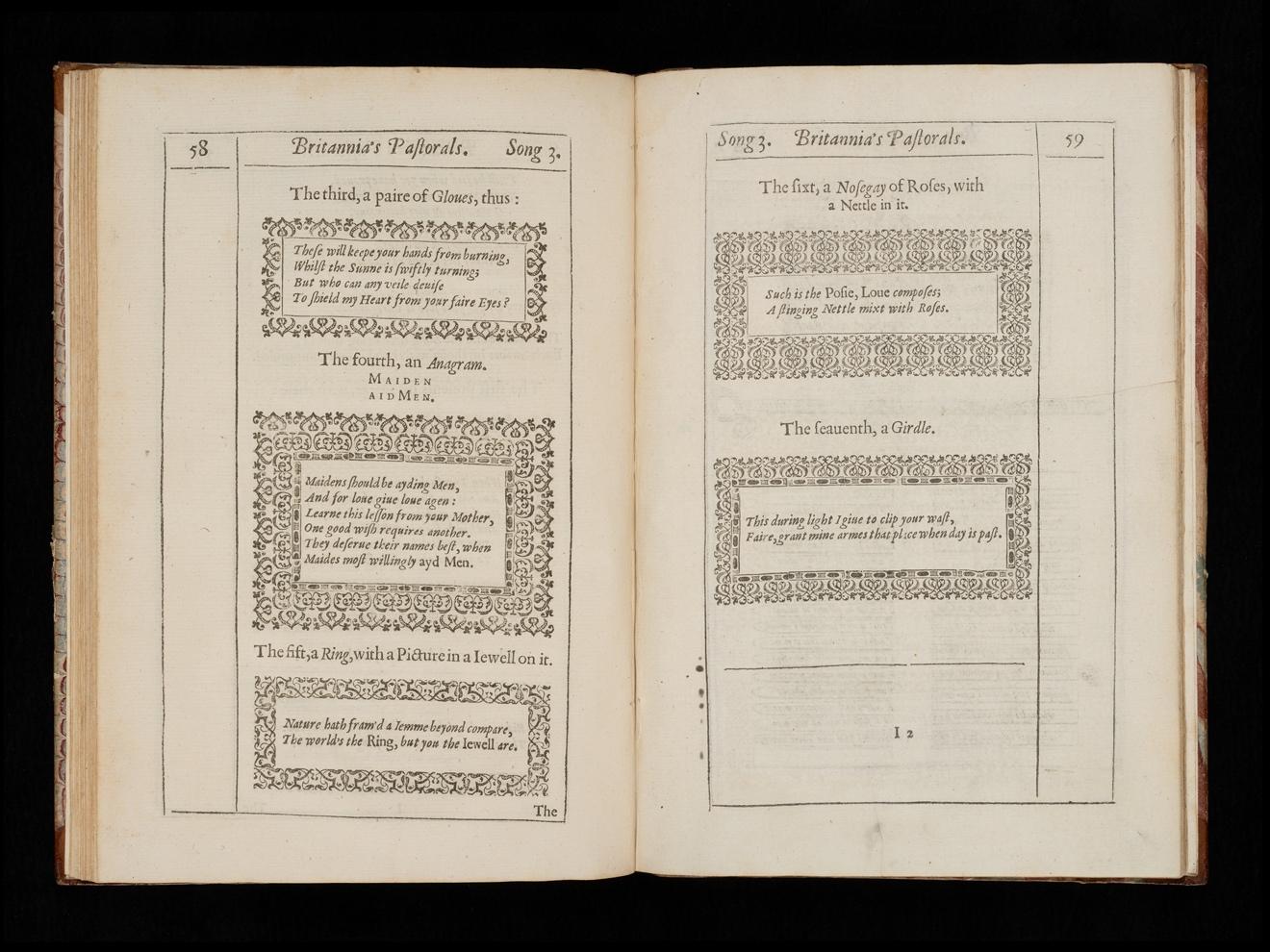 Fig. 6. William Browne, Britannia’s Pastorals bk. 1 (1613), I2v-I3r. RB 83042, The Huntington Library, San Marino, California.