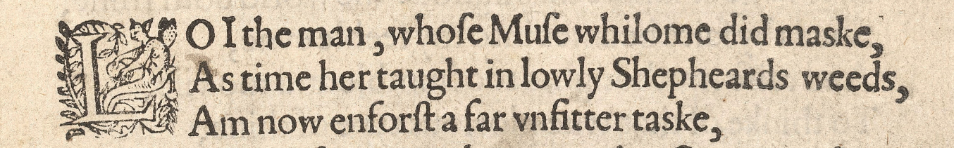 “LOI [sic] the man, whose Muse whilome did maske . . . ” So begins the proem to Book I of the 1596 Faerie Queene in the transcription produced by the Text Creation Partnership (TCP) from the Early English Books Online (EEBO) page images. 1 Spenserians may be annoyed or amused (or both) by the mistranscription of the opening words “LO” and “I” as the single word “LOI,” as if there were some poet named Loi who is bracing himself and his muse for the task ahead. Even if the line were not so famous, we would realize that “loi” is not a word in English, that “I” must be a separate word for the verb “Am” that opens line 3 to make any sense (“Am now enforst a far vnfitter taske”), and that the meter does not work when two words are collapsed into one. In echoes of this line by hands far less steady on the metrical rudder than Spenser’s, as well as in the 1590 Faerie Queene, the EEBO-TCP transcription contains the exact same error. 2 We can speculate on the reason for the error by looking at page images of the 1590 (fig. 1) and 1596 (fig. 2) editions:
