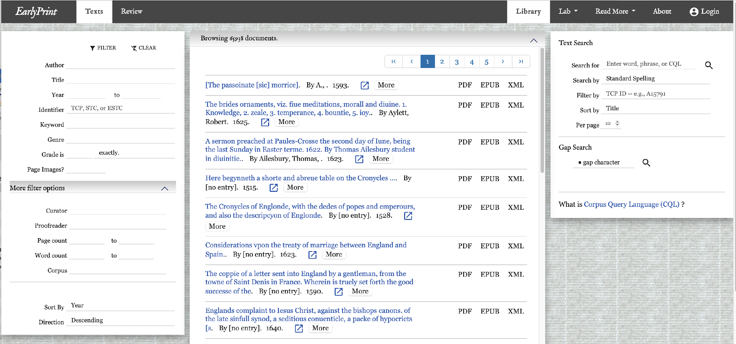 Fig. 5. Browsing texts in The EarlyPrint Library.